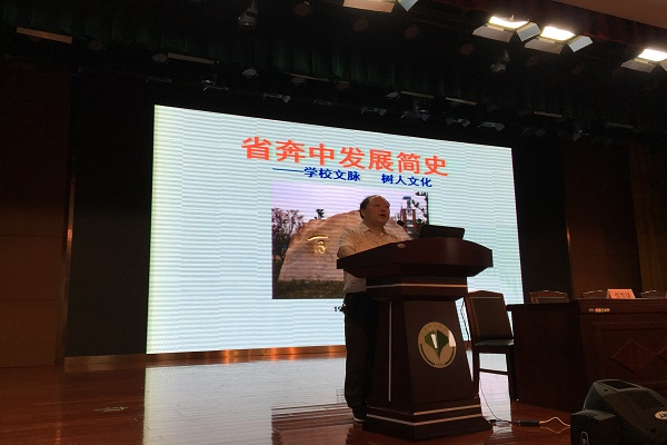 以史为鉴可以知兴替,教科室副主任翟建刚老师从学校的优秀文脉和树人文化两个方面,向新生介绍学校简史。优秀文脉,薪火相传;树人文化,钟灵毓秀。翟主任介绍了学校悠久的办学历史、深厚的文化积淀和丰硕的办学成果,从《岳校长为我们上最后一课》讲到《奔中八景吟》,为同学们生动阐释了“银杏品格、知音情谊、国钧思想、自主发展、传统精髓”的树人文化内涵。最后校史讲座在校歌《树人之歌》中结束,翟主任希望所有学生能够珍惜学校优秀的学习和生活条件,在奔中这片厚沃土地的滋养下茁壮成长。