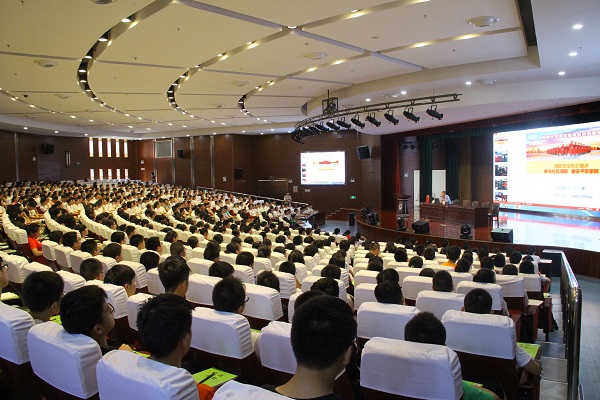 缺乏火灾的基本知识和自救知识,是火灾伤亡率高的主因。肖天鹏老师向我们展示了一段“8·28万达广场售楼处火灾”新闻,以其中“逃生过程频出错”的片段为反面素材,告诉同学们要有自救意识。肖天鹏老师首先通报了近期火灾形势,详细讲解了火灾发生的要素、火灾的预防、初期火灾的扑救、人员如何逃生、日常防火巡查检查等消防安全常识。不仅从理论上向大家传授关于消防的各种安全防范知识,而且列举了实际生活中的真实案例,如“黄金三分钟”等,教训深刻,发人深省。