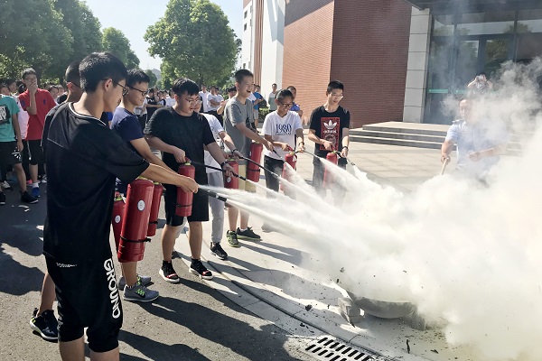 期间,肖天鹏老师重点讲解了灭火器的分类、检查方法、使用方法及注意事项,并现场示范了灭火器的操作方法。同学们也踊跃参与,实地演练了初期火灾的扑救,并与同学们就如何预防火灾进行广泛的交流。