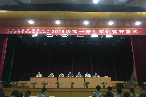 初到基地,换上军装,同学们显得十分兴奋。在教官的带领下,齐聚训练场上进行了简单的操练,齐步迈向报告厅和来自新桥高中的同学们一起参加开营仪式。大会上,西藏学子个个精神饱满,神采飞扬。眉宇间透着他们特有的淳朴与坚毅,腰杆笔直,认真聆听着领导的谆谆教诲。从他们的脸上可以看到他们的决心:在这七天里,做到服从命令,听从指挥,严格训练,磨砺自我。