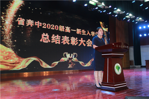 最后,纪晓平副校长对高一新生入学教育活动进行了总结。纪校长回顾了入学教育的点点滴滴:“在这期间,你们了解了校史,熟悉了校情,懂得了校规;你们明法律、学消防,冒着烈日进行紧急疏散演练;你们学会了自理,更懂得了自律;你们知道了要入室即静、入座即学,读书要精神饱满、上课要专注忘我;你们的演讲精彩感人,你们的誓言铿锵有力,你们的歌声悠扬动听;因为你们的付出,宿舍更加温馨,教室更加干净,校园更加美丽”。纪校长充分肯定了同学们的良好表现,并通过与大家分享两个小故事,激励学生学会合作、学会分享,把握好这珍贵的三年时光,努力奋斗,让每一天都过得优雅、高贵、充实、美好。