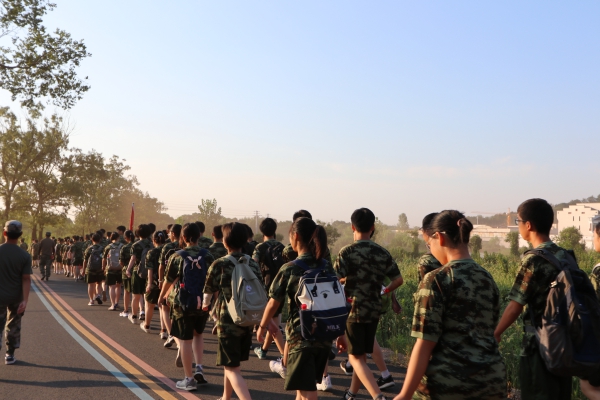 为强健同学们的体魄,强化他们的纪律意识,磨练他们的意志力,增强集体凝聚力,9月4日上午,我校2020级新生开展了15公里徒步拉练活动,课程发展处主任刘军彪、全体班主任和基地医务人员一路随行。