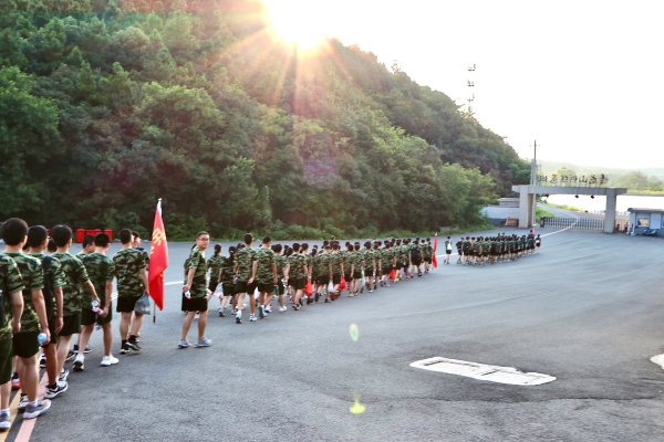 早晨六点半,旭日东升,伴着习习凉风,全体师生身着统一的迷彩服,排着整齐的队伍,井然有序地从青龙山训练基地出发,向神女湖行进。同学们精神抖擞,斗志昂扬,洋溢着青春的热血,不时喊起阵阵豪气干云的口号,展现了良好的精神风貌。