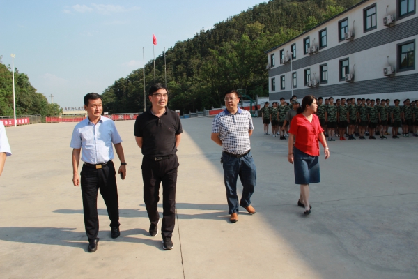 杨仁元副局长一行首先来到训练场看望正在军训的学生和教官,对这五天辛勤训练的学生给予关心和鼓励,王奕飞校长详细地汇报了这五天学生军训的作息时间、训练强度、身体状况等问题。杨局长指出,本次军训在传统科目的基础上,增加了真人CS军训模拟演练、篝火晚会等项目,活动内容丰富,拉近了学生间的关系。