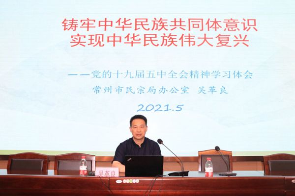 会议邀请常州市民宗局民族处处长吴革良为大家作《铸牢中华民族共同体意识 实现中华民族伟大复兴》专题讲座。吴革良同志围绕“党和国家的民族政策、铸牢中华民族共同体意识的提出及内涵、我市开展民族团结进步创建工作铸牢中华民族共同体意识的工作概况、西藏的发展和对西藏学生的期盼”四个方面讲述了在党的领导下,西藏从黑暗走向光明、从落后走向进步、从贫穷走向富裕、从专制走向民主、从封闭走向开放的伟大跨越,希望同学们不断坚定政治立场,知党恩、感党恩、听党话、跟党走,珍惜大好时光刻苦学习努力奋斗,成为社会主义新西藏的合格建设者和接班人。