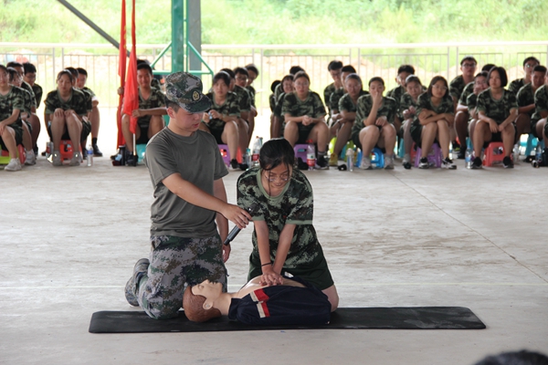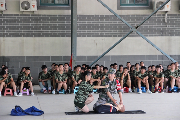 下午的训练场上,教官带领同学进行了心肺复苏的训练教学。开展应急救护演练,是为了增强师生应急救护意识,提高自救互救能力,同时也为推进学校安全教育,创建和谐平安校园奠定坚实基础。教官首先演示了对心脏骤停的成年男性进行CPR(心肺复苏)的操作,并在培训过程中介绍了心脏救护知识对于人类生命安全的重要性。演练中,同学们都听得很专注,并踊跃上前参与练习,教官们也兴致盎然地指导学生实践。
