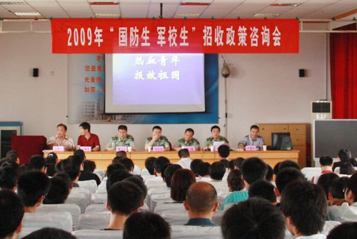 6月10日,高考的帷幕刚刚落下,“国防生、军校生”招生政策咨询会又在我区唯一一所南京军区国防生基地的江苏省奔牛高级中学召开。武进区人武部部长傅宁汉、省军区选培办干事冯志远、军分区政治部组干科科长金健、区人武部政工科科长徐敏以及奔牛镇人武部长卢建和、省奔中副校长王锁良等领导参加了咨询会。省奔中有80多位刚刚参加完高考的有志青年和他们的家长一起来校参加了会议并咨询了有关政策。区人武部政工科科长徐敏在会议上介绍了2009年度招收国防生、军校生的有关政策。与会领导还现场回答了学生和家长的提问。据悉,报考“国防生、军校生”的考生,除了必须符合军事院校报考条件外,还须参加政治考核、军人职业适应性心理检测、军检和面试。在填报提前录取院校志愿时,填报“国防生、军校生”志愿。考生在录取为“国防生、军校生”后,高校、考生本人和高校后备军官培训办公室三方须签订《国防奖学金协议书》,考生家长(监护人)为签约考生的担保人。