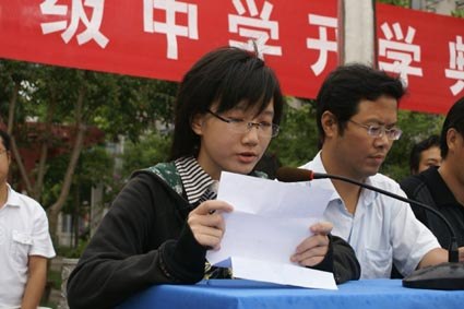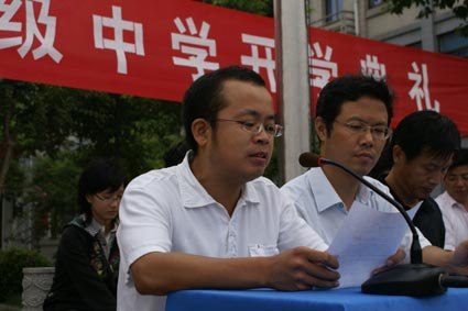 九月四日下午第四节课,我校2800名师生员工齐聚学校大操场,隆重举行了一年一度的开学典礼。开学典礼由陶锋副校长主持。学校党总支书记、校长谢建伟作了热情洋溢的讲话。他对报考我校的835名高一新生、来我校工作的新教师以及5位新来校的外籍教师表示热烈欢迎。对过去一学年所取得的骄人成绩进行了总结,也对全校师生在新学年中的工作和学习提出了殷切的希望。与会师生对谢校长的讲话报以热烈的掌声。接着高三教师代表刘军彪、新教师代表张薇、高三学生代表陈晔琳分别发言,向全校师生作了庄重的承诺,决心为省奔中的发展,贡献自己的力量。最后,王锁良副校长宣读了学校的表彰决定,宣读了在2006至2007学年度取得优异成绩的优秀学生干部、三好学生、品学兼优生以及“树人”奖学金获得者名单。