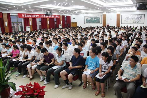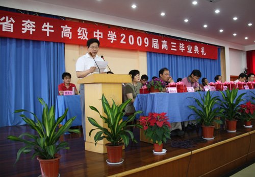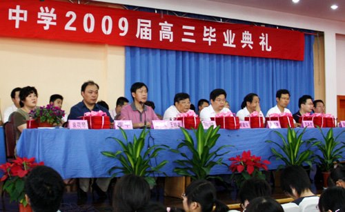 上午九时,在树人楼五楼大会议室隆重举行了2009届学生高中毕业典礼。2009届860多位毕业生回校参加了毕业典礼。毕业典礼由本届高三年级管理小组组长王锁良副校长主持。学校党总支书记、校长谢建伟作了热情洋溢的讲话,他对2009届全体同学经不懈努力而顺利完成高中阶段的学业表示热烈祝贺。班主任代表周伯明老师代表15位班主任、祁红菊老师代表高三年级全体任课教师作了发言。江苏省优秀学生干部、高三(5)班的刘鑫同学代表全体毕业生作了大会发言,她代表全体同学衷心地感谢三年来母校的培育之恩,决心不忘师恩,为“明天母校以我为荣”而努力。接着由刘鑫和江宵斌两位同学共同领誓,全体毕业生进行了毕业典礼宣誓(今天,我们举起右手,向母校,向未来,庄严宣誓:我们谨记恩师教诲:忠诚执着,我们谨遵母校校训:厚德弘毅;为了母亲的微笑,我们用拼搏谱写壮丽诗行,为了母校的期望,我们让血液溶入奋斗力量;不负家人希望,担起家庭责任,不负母校重托,甘为社会栋梁;用聪慧和才智奉献社会,以品格和精神影响他人;我们和母校共同成长,我们和母校共同辉煌;今天挥手银杏从此去,明天成就事业笑归来!)。最后谢校长向全体同学发放了毕业证书。