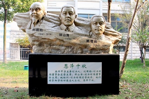 省奔中主要创办人刘国钧、邵山涛、姚祖训先生雕像