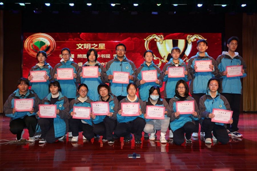 在交流分享经验环节,来自高二(7)班的陶伟文作为学习之星代表,高二(12)班的史宇哲作为文明之星代表,高二(5)班的李欣怡作为进步之星代表分别上台分享了感悟。