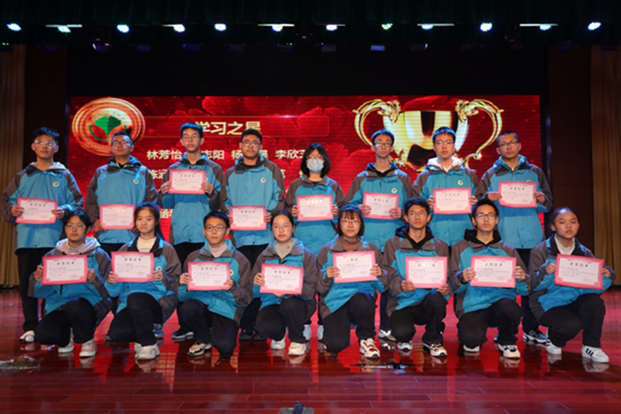 在团结奋进的氛围带动下,目前我校高二年级发展势头良好,正处于进一步提高的上升期,高二学生也正逐渐摆脱稚嫩,迎来高光时刻。本次表彰大会主要分为宣读表彰决定、表彰先进学生、交流分享经验和总结期望四大部分。表彰决定分为个人荣誉和期中考试表彰两部分,课程发展处刘军彪主任宣读了表彰决定。个人荣誉涵盖了学习、文明、专注、劳动、读书、运动、进步七大类型,期中考试表彰分为三门总分位列年级前二十,等级赋分后六门总分位列历史科目类前十名,物理科目类前二十名的学霸,还有单科位列年级前十名的实力之星。年级管理小组成员为各奖项获得者颁发了奖状。