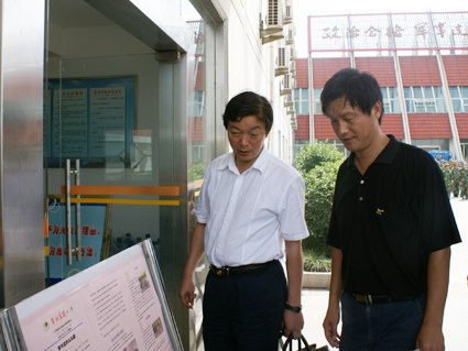| 8月9日上午十时,武进区教育局副局长毛建东同志(上图左一)与教育科王为民副科长(下图右一)一行来到国防教育培训中心视察我校高一新生的军训工作。王锁良副校长、蔡剑波主任、翟建刚副主任以及前来探营的裴志军主任、李平副主任等一起接待了他们。 毛局长非常关心省奔中师生的军训生活,对班主任老师表示了亲切的慰问,对省奔中高一新生的吃苦耐劳精神大为赞扬。他还特别关照国防训练中心应尽可能改善学生的膳食。 毛局长看到了省奔中军训营主办的《军训简报》,非常欣赏,说:“你们的简报越办越好了。”他对第三期上发表的谢校长的《致军训师生的一封信》尤其关注。他说,谢校长这种关心师生的精神真了不起。谢校长虽然人不在这里,心里还一直牵挂着这里的师生。 一同前来的王科长也很欣赏我们的《军训简报》,表示回去之后,将要求全区举行军训活动的学校都要搞好《军训简报》,将来汇总展出。
