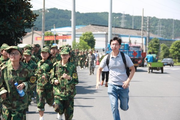 9月9日上午,省奔中2015级新生头顶烈日,徒步十公里,往返常州国防园和武进国防园。绿树相随,青山相伴,一步一景。然而,这里并非避暑佳地,旅游胜地,而是充满汗水,充斥灰尘的战场。