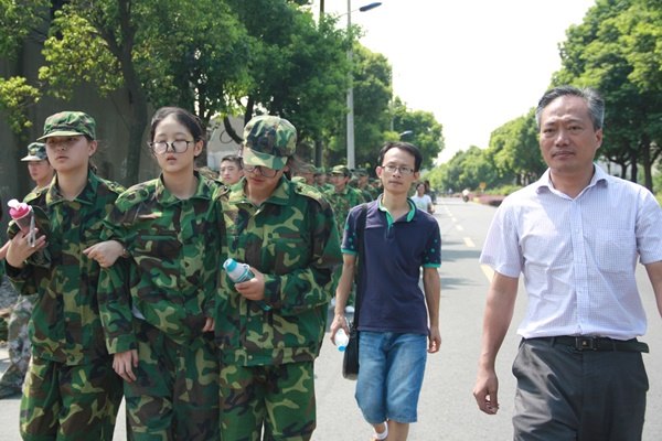 浩浩荡荡的绿色队伍,在历经10公里的艰苦拉练后,回到常州国防园。755名学生全员前往,全员返回,坚持保持队形,没有一个掉队,没有一个受伤,班主任始徒步终陪伴。今日,那一张张年轻而疲惫的脸多了些不同的神色。“经受磨难,就是为了以后坦然面对磨难!”王奕飞校长在军训动员大会如是说,省奔中的新生如是闻,也如是做。
