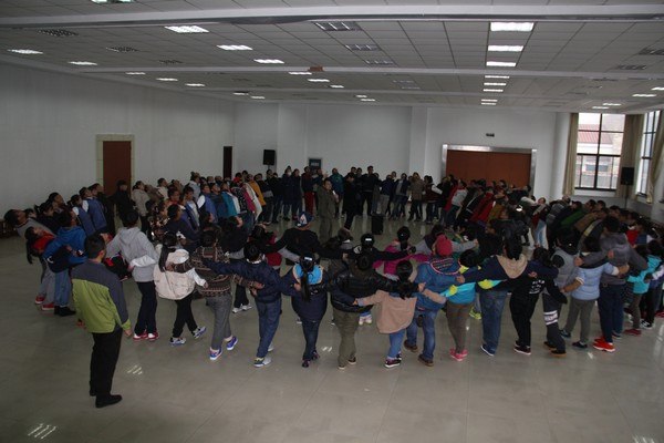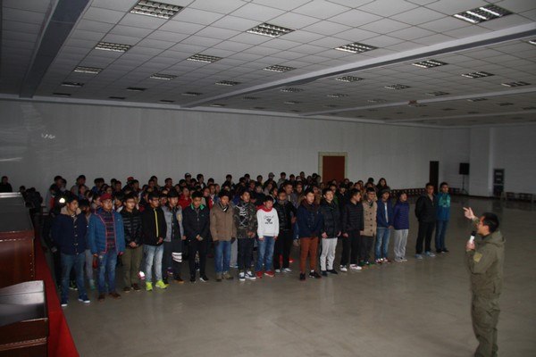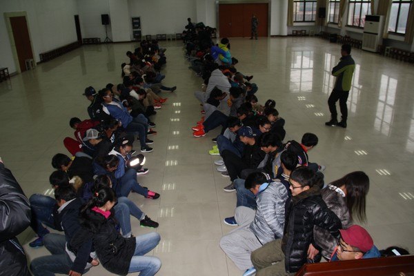 28日上午10时许,西藏学生乘坐大巴车准时抵达拓展基地,同学们用最快的速度整理好宿舍,立刻冒着严寒开始了训练。