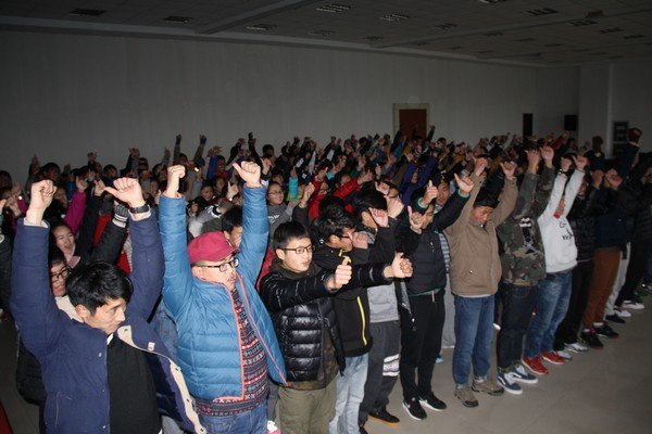 训练场上加油声、口号声此起彼伏。每个项目完成后,胜利的欢呼声响彻整个训练场,也将第一天拓展训练的气氛推向顶点!