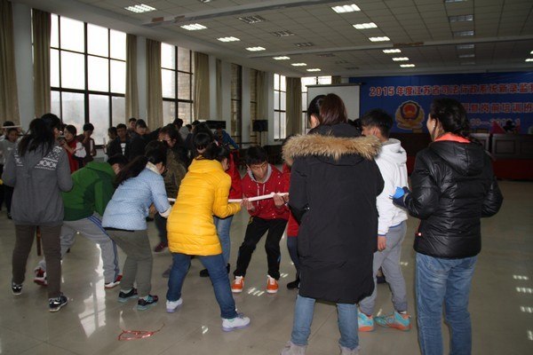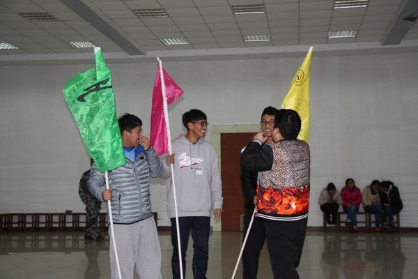 最先开始的是“破冰”项目。全体受训学生分成三支队伍,队员们相互配合、团体协作,分别确定了各自团队的队长、旗手、队名和口号。大家在短时间内就感受到了团队的力量。“破冰”训练活跃了现场气氛,也调动了大家的参与热情和积极性。
