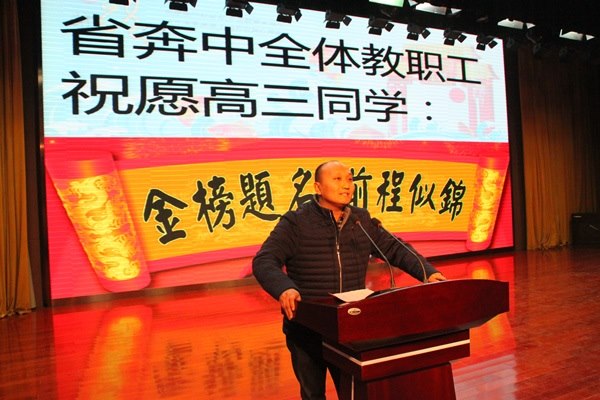 最后,王奕飞校长致辞。他以《做最美奔中人,圆伟大中国梦》为题,激励高三学子以每个人的小梦想织就奔中人的腾飞梦,织就伟大祖国的复兴梦;他号召省奔中所有学生贯彻落实习近平总书记对青年学生提出的“勤学、修德、明辨、笃实”要求,做最美奔中人。王校长认为,最美奔中人是胸怀大志之人、是虚怀若谷之人、是心存感恩之人、是勤奋踏实之人、是百折不挠之人。王校长号召全体省奔中师生人人争做最美奔中人,为圆每个人的小梦想,圆伟大的中国梦而奋斗!