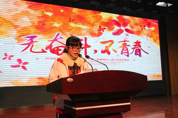 接下来,高三(10)班顾钰同学作了“无青春,不奋斗”的演讲,代表了高三全体同学的雄心壮志和无比自信,展现了省奔中人的昂扬斗志。