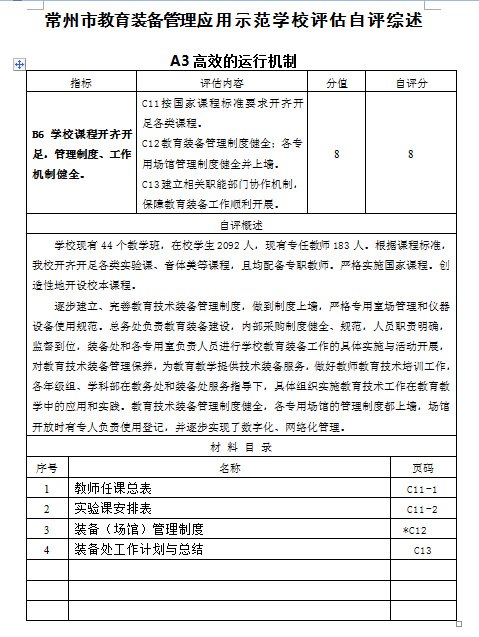 B6学校课程开齐开足,管理制度、工作机制健全。
