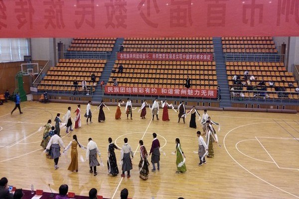 省奔中西藏学生应邀代表新北区参加了民族传统项目的表演赛。省奔中本次参赛的节目为《青春锅庄》,欢快的音乐,优美的舞姿赢得了现场观众雷鸣般的掌声。民族处、西藏部学生会为本次比赛做了大量的准备工作,从音乐的选取,舞蹈的动作,队形的变换等方面都做了精心的思考,力求充分展现藏民族文化。