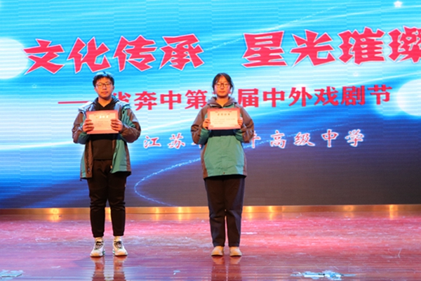 除此之外,本届戏剧节还特别设置了最佳演员奖,获奖演员分别为最佳男主角邱添,最佳女主角周阳,最佳男配角孙昊轩,最佳女配角蒋欣凌。此外还设置了优秀舞台设计奖,由高二(15)班和高二(5)班获得,优秀造型设计奖则由高二(8)班和高二(9)班获得。