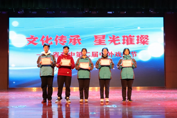 为贯彻落实“进一步推进高雅艺术进校园活动,丰富校园文化生活,提高学生艺术修养要求的重要举措”, 2021年12月18日,省奔中在丽江楼成功举办了以“文化传承,星光璀璨”为主题的第二届中外戏剧节。来自高二的16个班级分别带来了精彩纷呈的话剧表演。此次大赛由李奕颖和姜炜同学主持。评委则由课程教学处刘军彪主任、党政办公室陈益峰副主任以及语文组林珍、祁洁、祁双红、孙燕君4位老师共同担任。