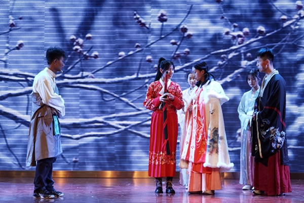 本次戏剧节要求学生们从语文书本中选取表演内容,有的班级重现了《雷雨》中的激烈矛盾冲突;有的班级则改编了汪曾祺先生的小说《星期天》;有的班级则着重表现小说《抉择》中主人公在面临抉择时的坚定信念;有的班级选择《红楼梦》中的片段进行演绎;有的班级则将契诃夫的两篇小说结合在一起改编成《我的猫》。除此以外,还有《无人生还》《风声》《范进中举》《三英战吕布》《荆轲刺秦》《哈姆雷特》等经典话剧的表演,西藏班的同学们更是将《文成公主》和《红河谷》的故事演绎得淋漓尽致。同学们的表演内容囊括古今中外,不同民族,比赛现场精彩纷呈,高潮迭起,丽江楼内掌声阵阵,喝彩连连。