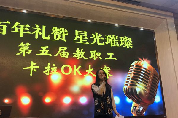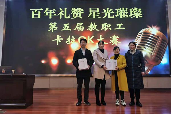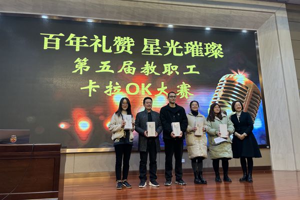 为丰富教职工业余文化生活,展现青年教职工才艺,12月21日下午,由校团委主办的第五届教职工卡拉OK大赛在树人楼四楼报告厅举行。活动得到学校老师的积极响应,多位教职工参加比赛。副校长纪晓平、学生发展处主任沈国英、艺术学科部部长潘雪梅老师以及音乐组董丽娟老师担任本次比赛评委。比赛活动由校团委副书记陆晨老师主持。