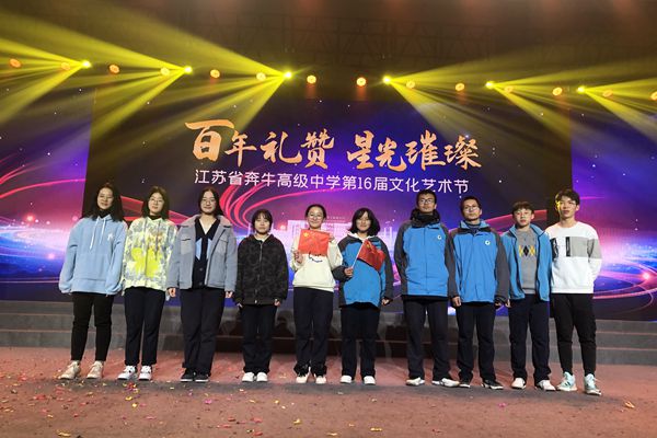 礼赞中国共产党成立百年芳华,激扬青春勇毅前行。12月30日晚上7点,江苏省奔牛高级中学迎来了第十六届校园文化艺术节“百年礼赞 星光璀璨”文艺晚会,本次晚会主持人由“校园十佳主持人”担任,他们分别是高二(3)班李奕颖,高二(5)班姜炜,高一(5)班杭雨轩,高二(4)班钱元旻。
