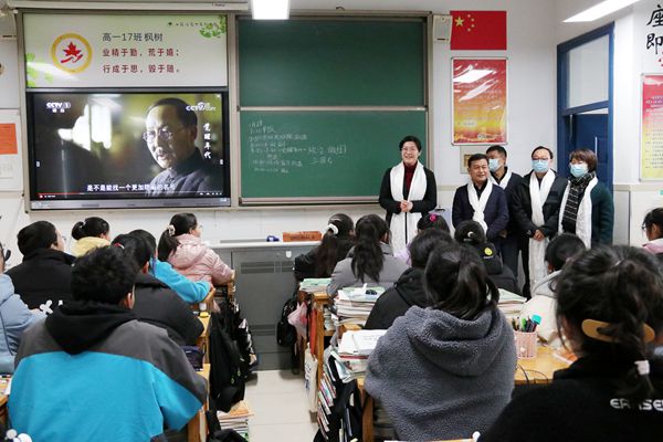 王奕飞校长汇报了留校西藏师生学习、生活、活动等具体安排,完利梅一行对学校的周密安排和精心组织给予了高度肯定。之后,完利梅一行来到西藏班教室,西藏学生为所有领导献上了哈达。完利梅向西藏班师生送上春节的问候,同时提醒,值此疫情特殊时期,西藏班的同学要严格遵守学校疫情防控各项规定,做好个人防护,确保度过一个平安吉祥的新年。在高一17班教室,完利梅看到学生正在观看《觉醒年代》,叮嘱学生要像100多年前的革命先辈一样,努力学习,提升本领,肩负强国使命,展现最“燃”的青春和最热血的担当。在高三14班教室,完利梅还鼓励高三学生享受在省奔中的美丽时光,在高中的最后一个寒假,珍惜时间,自主学习,争取在6月高考中取得好成绩。