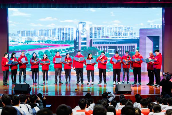 “感恩篇”中,高三管理小组代表李平副校长和高三全体班主任一起朗诵诗歌《同学,我想对你说》,期望同学们能够乘风破浪,逐梦远航。各班班长献花致敬。虽然家长们无法来到现场,但他们通过视频向学生们表达了真挚的祝福。高三3班董佳林同学的妈妈作为家长代表,与大家分享了“六个关键词”,希望全体高三学生能够“有责任”、“有担当”、“会感谢”、“善学习”、“讲沟通”、“会合作”。老师和家长的默默付出、无私奉献赢得了高三全体同学持久和热烈的掌声。