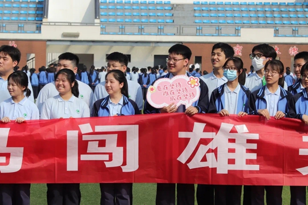 随后,王奕飞校长向全体2022届高三考生致辞。在致辞中,王校长表示“高考是人生的一次挑战而非人生的全部。没有人因高考赢得所有,也没有人因高考输掉一生。多年过去,再回忆高考,其实本质上没有考得好与差之分,重要的是年轻人在一起做一份试题,然后决定去哪里上学、做什么样的工作、遇到什么样的人。不问结果如何,拼过了,就很了不起。”“今朝踏歌行,明日战辉煌”,他祝愿全体高三学生高考成功、金榜题名、前程似锦。