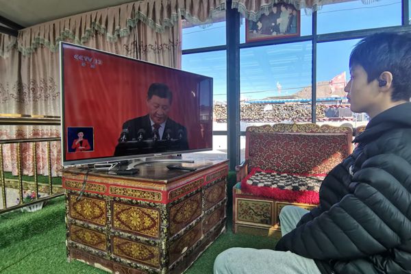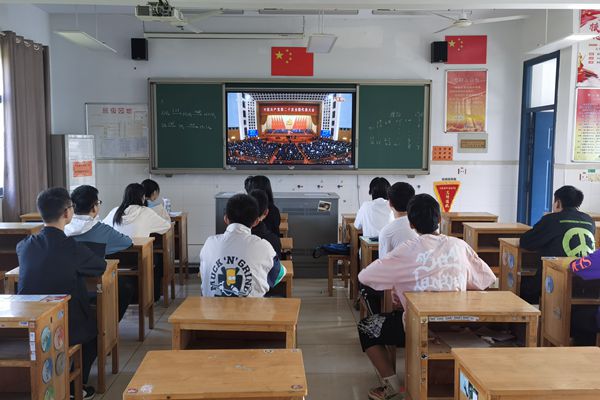 其他师生也纷纷通过网络、电视等形式,共同观看时代盛会。因疫情尚未返校的西藏班同学们选择自主在家中观直播看,而已经返校的同学则自发在教室集中收看。大家被激发起浓浓的爱国情怀,直播时结束后,更是怀着激动、振奋的心情热议祖国发展。