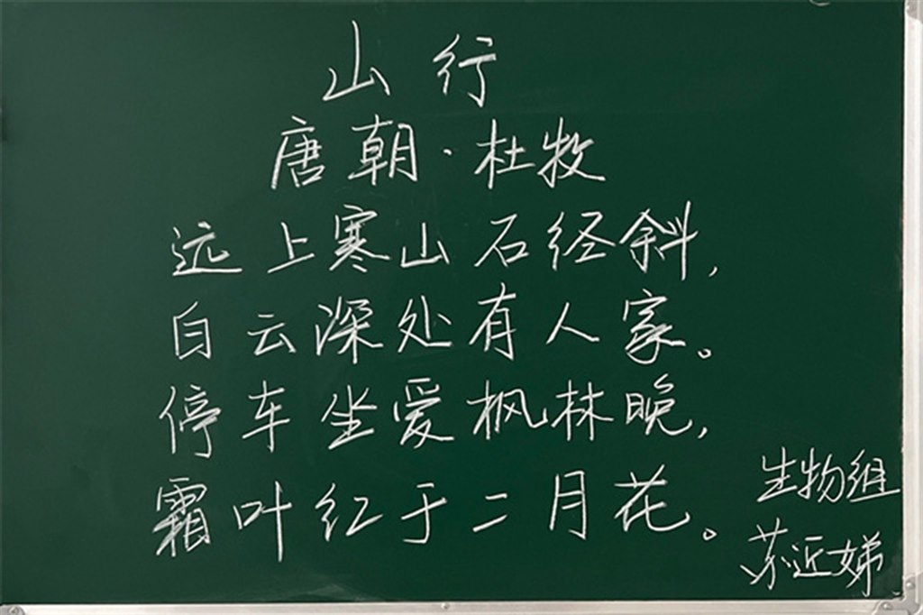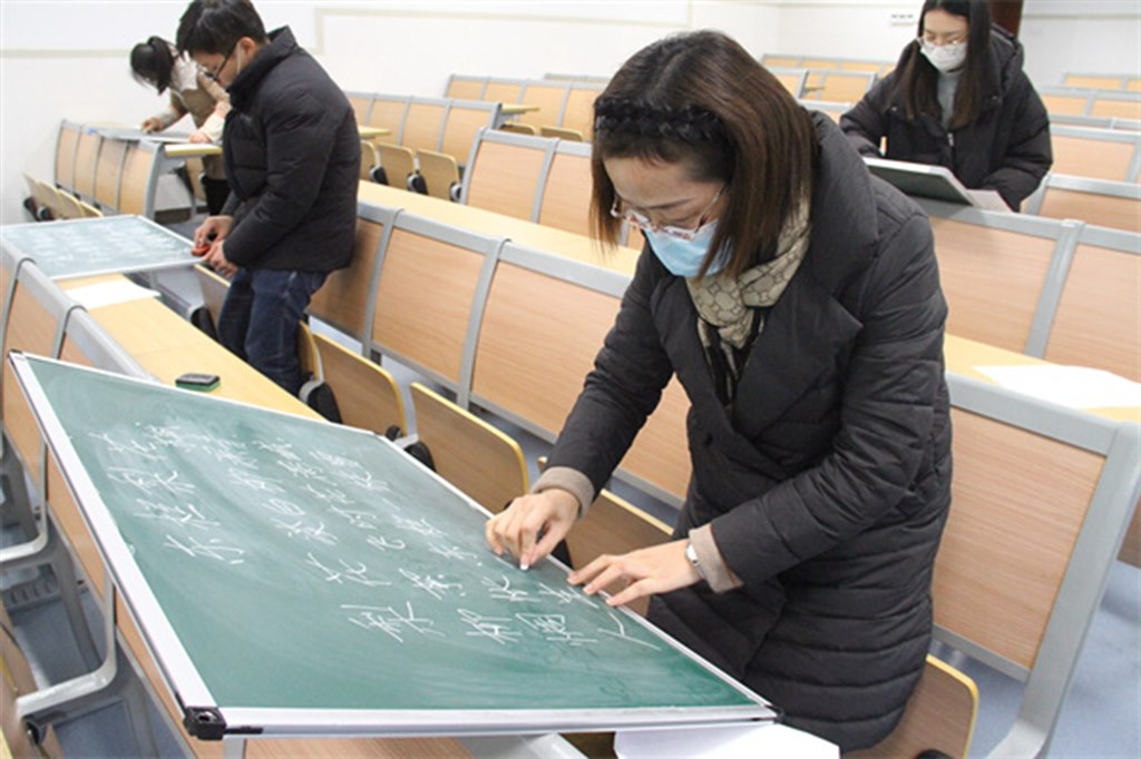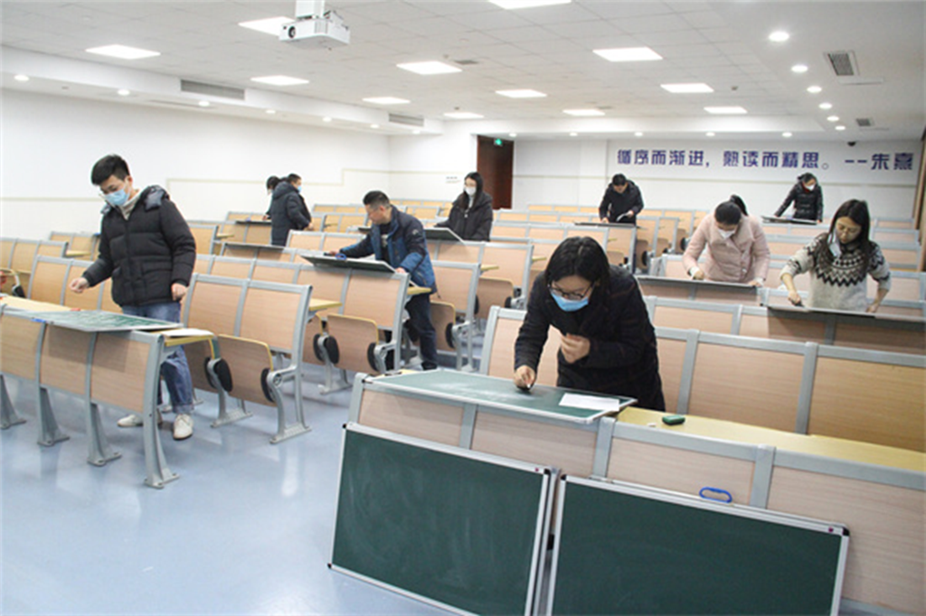 12月14日下午,所有参赛教师于树人楼二楼阶梯教室1参加现场比赛。比赛中,参赛选手个个神情专注,凝神运气,尽情挥洒他们手中的粉笔,有的刚劲有力,有的潇洒飘逸,有的大方得体,有的秀气隽美……无论是端庄秀丽的楷书,还是行云流水的行书,都展示出了书法艺术在省奔中的良好传承。而教师们在繁忙的课业中,以身作则,将自己对书法的热爱,充分融入到自己的作品中,或笔走龙蛇,不拘一格,或朴实无华,却兼纳乾坤,产生了积极的影响。本次粉笔字比赛由语文组担任评委。各评委成员经过反复评选,多次商议,根据版面设计、书写情况等,评出教师粉笔字一等奖15人,二等奖25人。