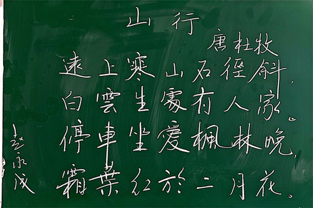 横平竖直书汉字,一撇一捺写人生。一手美观、规范的粉笔字,是每一位教师必备的教学基本功。为了积极配合我校文化艺术节活动,我校组织全校教师参加粉笔字比赛,各学科部的教师报名踊跃,积极参加学校活动。