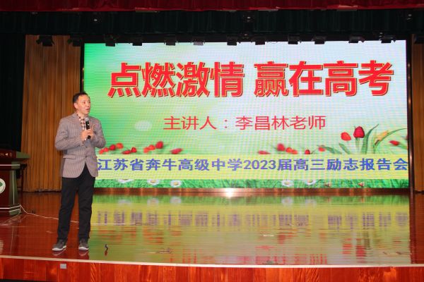 2023年4月8日晚,我校全体高三学生及班主任们齐聚丽江楼报告厅,共同聆听由著名青少年心理教育者李昌林老师主讲的“点燃激情 赢在高考”励志讲座,为高考再添前进动力。本次活动由校党政办公室主任祁文娟主持。