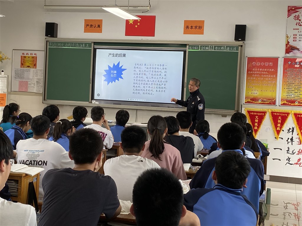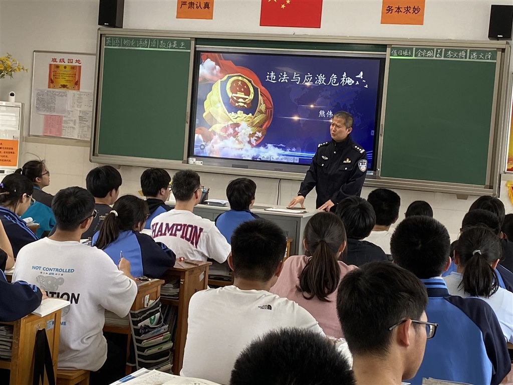 为深入贯彻落实科学发展观,以提高学生法律素质为目标,深入开展法制教育,大力推进依法治教、依法治校,坚持法制教育与道德教育相结合、与青春期教育相结合、与心理健康教育相结合,不断增强青少年的法制观念和自我保护意识,大力营造有利于青少年健康成长的社会环境,努力开创我校学法制教育工作的新局面。2023年4月28日,学校法制副校长奔牛派出所教导员熊伟来校为我校师生上了一堂生动的法制课。