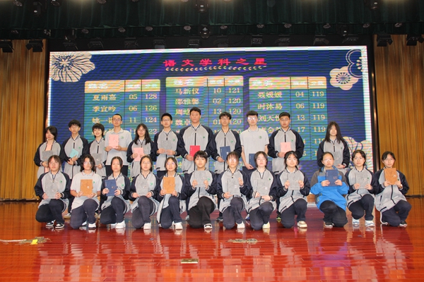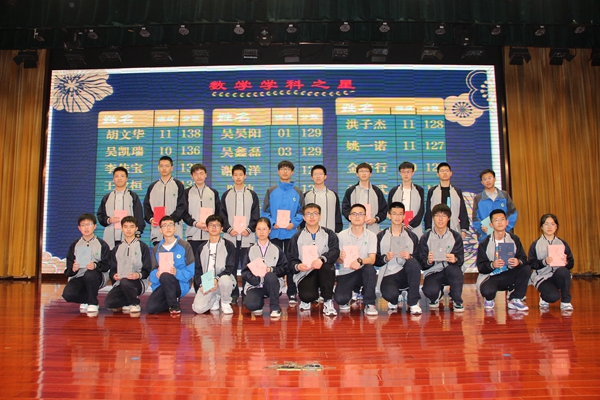 潜心治学,追求卓越,是我们全体高一人的追求。课程教学处副主任顾慧艳宣读了本次期中考试“学科之星”获奖名单,囊括语文、数学、英语、物理、化学、生物、政治、历史、地理九门学科并为获奖学生颁奖。