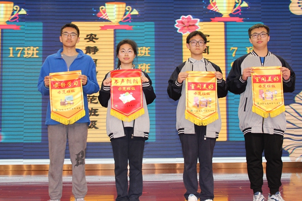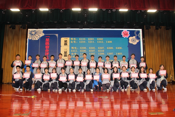 狠抓常规,强化学风,是我们全体高一人的共识。学生发展处副主任蔡志庆宣读了11周常规三项评比结果,本期累计集火示范班级有书声琅琅示范班高一17班、安静自习示范班高一9班、高一18班及室间美好示范班高一7班、高一9班。紧接着蔡主任宣布了星级宿舍表彰名单,各宿舍代表上台领奖。
