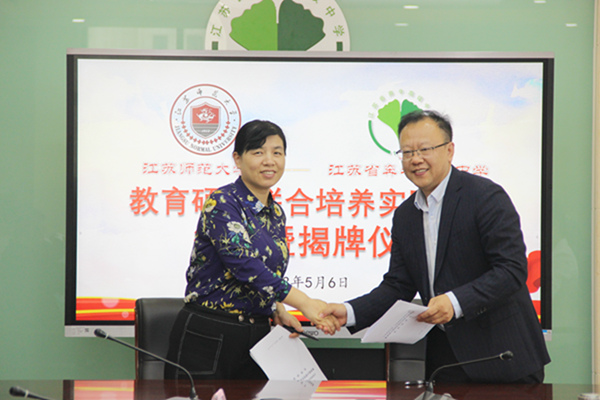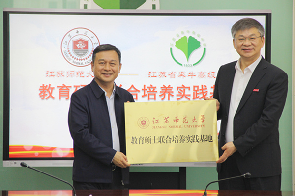 接着,赵峻岩、苏近娣共同签署《江苏师范大学、江苏省奔牛高级中学中学共建教育硕士研究生联合培养实践基地合作协议》,蔡国春、王奕飞共同为教育硕士联合培养实践基地揭牌。最后全体与会者合影留念,共启新篇章。
