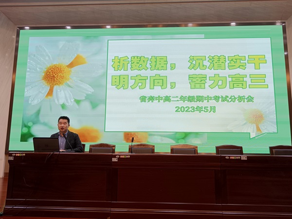 5月9日下午,在树人楼四楼报告厅召开了以“析数据,沉潜实干;明方向,蓄力高三”为主题的期中考试质量分析会,会议由课程教学处周伯明老师主持,全体高二教师参与会议。