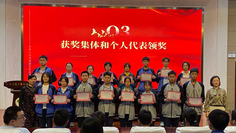 今年是全面贯彻落实党的二十大精神的开局之年,也是纪念五四运动104周年,更是共青团紧跟党迈上新的百年青春征程的起步之年。值此五四青年节之际,我校团委于5月10日下午在树人楼四楼报告厅召开“青春心向党,奋进新征程”2023年五四青年节表彰大会。副校长苏近娣、学生发展处主任沈国英、团委书记陆晨、团委全体老师与各班团支书、优秀团员、高三入团积极分子共同参与了此次会议。大会由团委沈芙蓉老师主持。