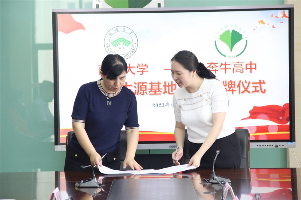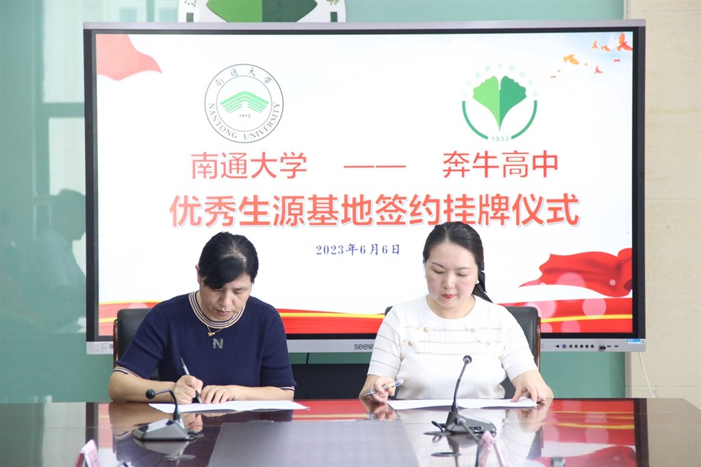 仪式上,双方签署了优质生源基地协议,并共同为“南通大学优质生源基地”揭牌。