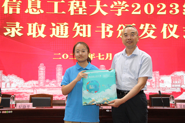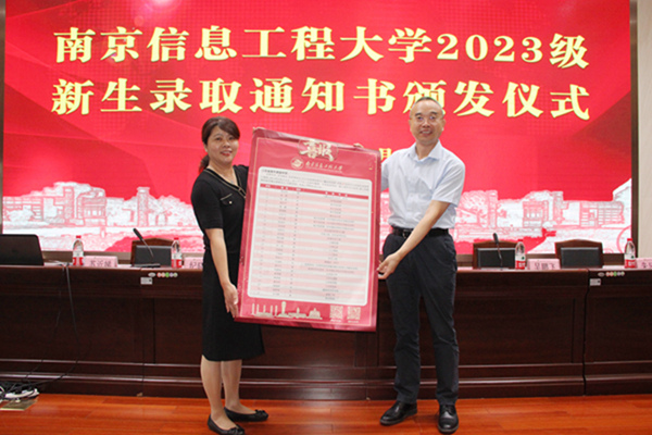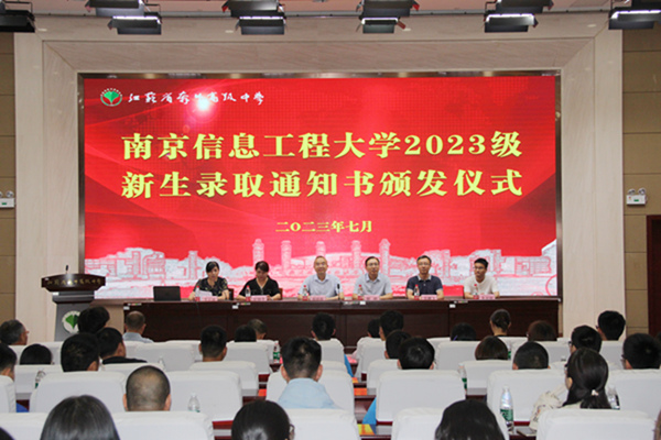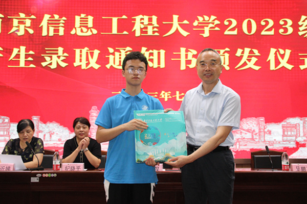 7月24日下午,南京信息工程大学党委常委、总会计师胡明保,文学院党委副书记郭雨,文学院党委副书记、副院长吴鹏飞和朱延刚老师一行4人莅临江苏省奔牛高级中学,为我校27位南京信息工程大学2023级新生颁发录取通知书。省奔中相关领导,被南京信息工程大学录取的新生及其家长一起参加了录取通知书颁发仪式,本次活动由副校长苏近娣主持。