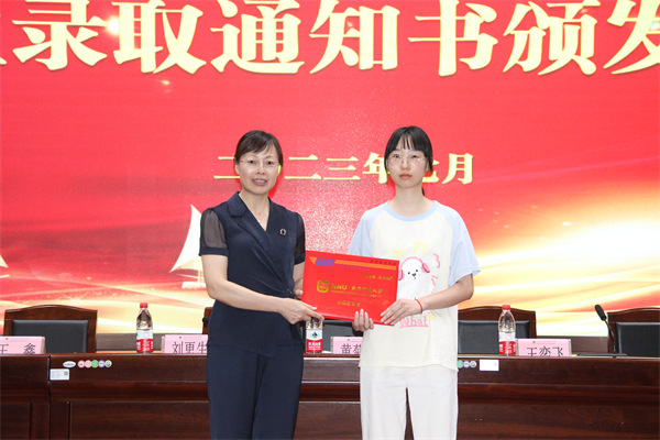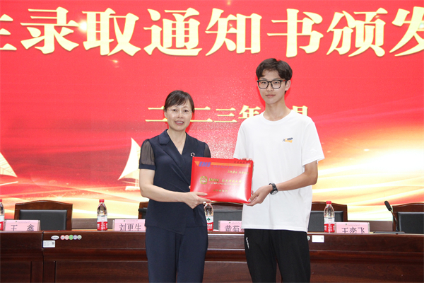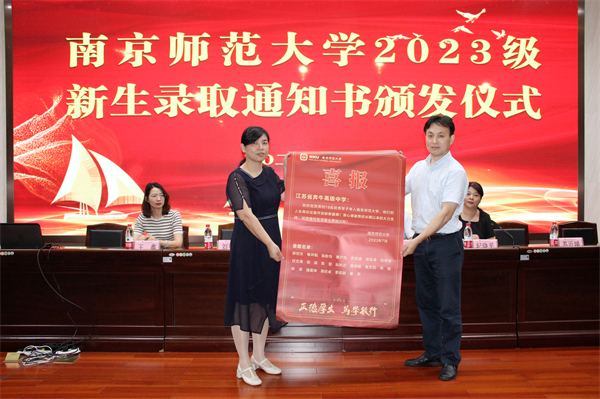 南师大教院党委副书记刘更生宣读了19名2023级新生录取名单并向副校长苏近娣赠送新生录取喜报。