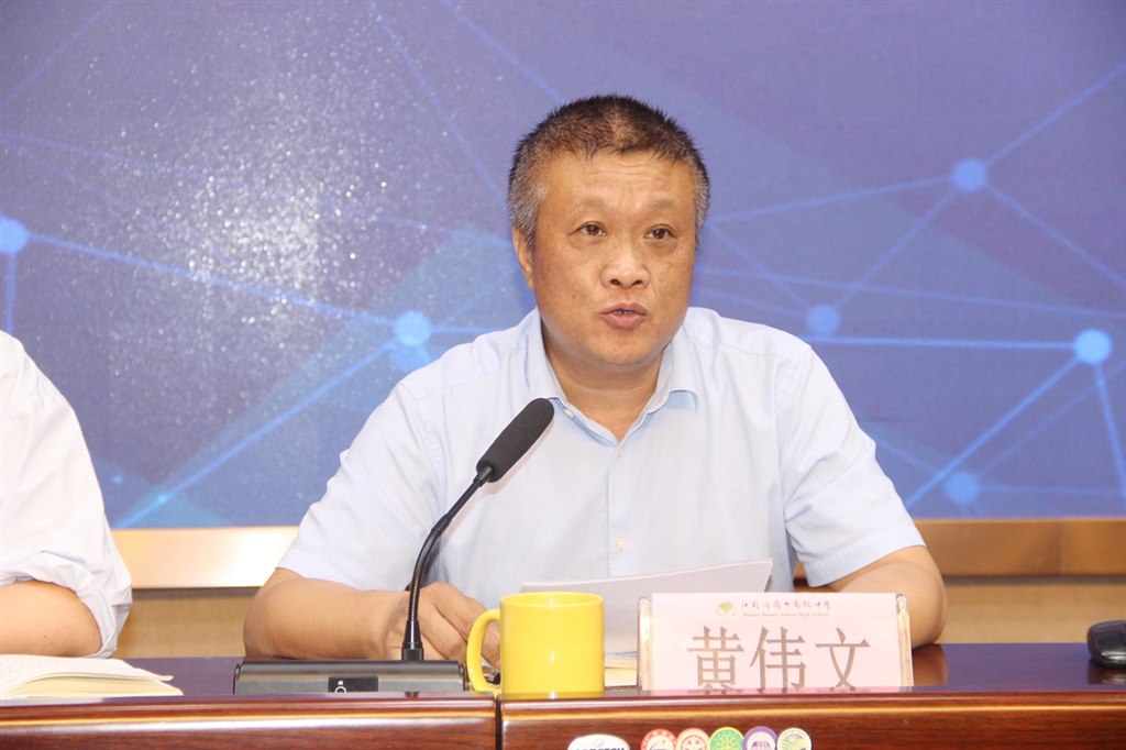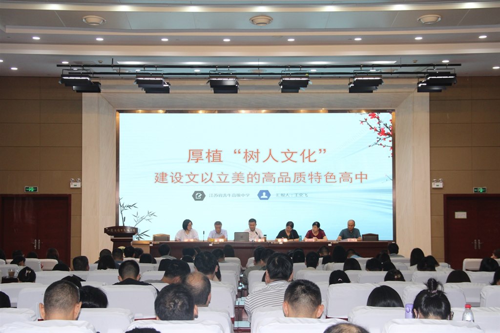 接着他以《厚植“树人文化”、建设文以立美的高品质特色高中》为题,高屋建瓴地为全体教职工指明新学期的工作思路。他从江苏省首批高品质特色高中的申报说起,明确了高品质特色高中的内涵以及当前学校的发展形势,从以下五个方面指出我们当下的任务:一是坚持党建引领,落实立德树人根本任务,要加强党建工作,强化思政育人,深化民族教育;二是加强师德建设,习养新时代大先生,全体教师要锤炼高尚师德,成为促进学生全面发展的引路人;三是构建“阳光树人课程”,共筑师生成长平台,进一步丰实课程体系,建设精品课程,持续推进项目实施;四是深化教学改革,提升人才培养质量,要加强教研组建设,加快课堂转型,加强作业设计和管理,切实落实“四精四必”要求;五是优化德育体系,实施自主德育范式,既要统整建设德育场域,搭建自主德育系列活动载体,也要打造高素质德育团队,构建“内生活力,文化自觉”的“鹰领型团队”。这些建议全方位地覆盖了学校各个层面的工作,高屋建瓴,极具思考价值和指导意义。