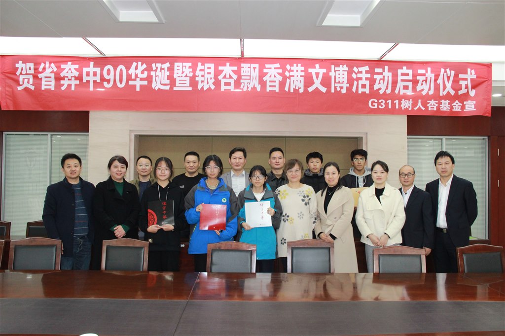 2023年12月9日上午,江苏省奔牛高级中学2000届11班10名校友怀揣着激动的心情回到母校,自发组织、举行“贺省奔中90华诞暨银杏飘香满文博活动”启动仪式。校长纪晓平、党政办公室主任祁文娟、王文元老师及各年级学生代表受邀一并出席活动。本次活动由2000届校友,江苏理工学院资源与环境工程学院副书记、副院长杨小兵主持。