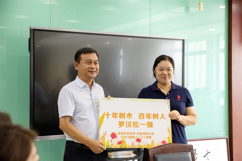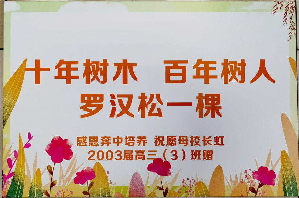 感恩奔中培养 祝愿母校长虹2003届高三3班捐赠罗汉松一棵